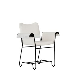 The frame of each piece is made from stainless steel rods, incorporating a distinctive statement curve at the feet, in white or black epoxy paint.
