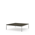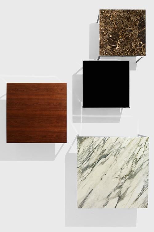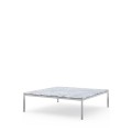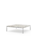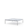 Clear glass or various marble tops with rectangular and square welded steel frame in polished or chrome finish Marble tops are coated with a transparent polyester finish to help prevent use-associated stains.