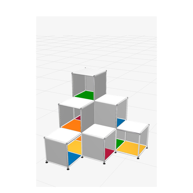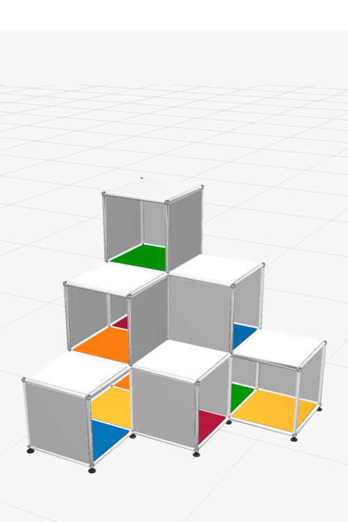 Designed to encourage play without compromising order, this USM Haller children's storage blends whimsy with structure. Its pyramidal shape creates a lively composition: a deliberately chaotic appearance that nonetheless supports highly practical storage solutions. Made for the bedroom, it encourages kids' independence while offering parents reassurance through robust construction and premium craftsmanship.