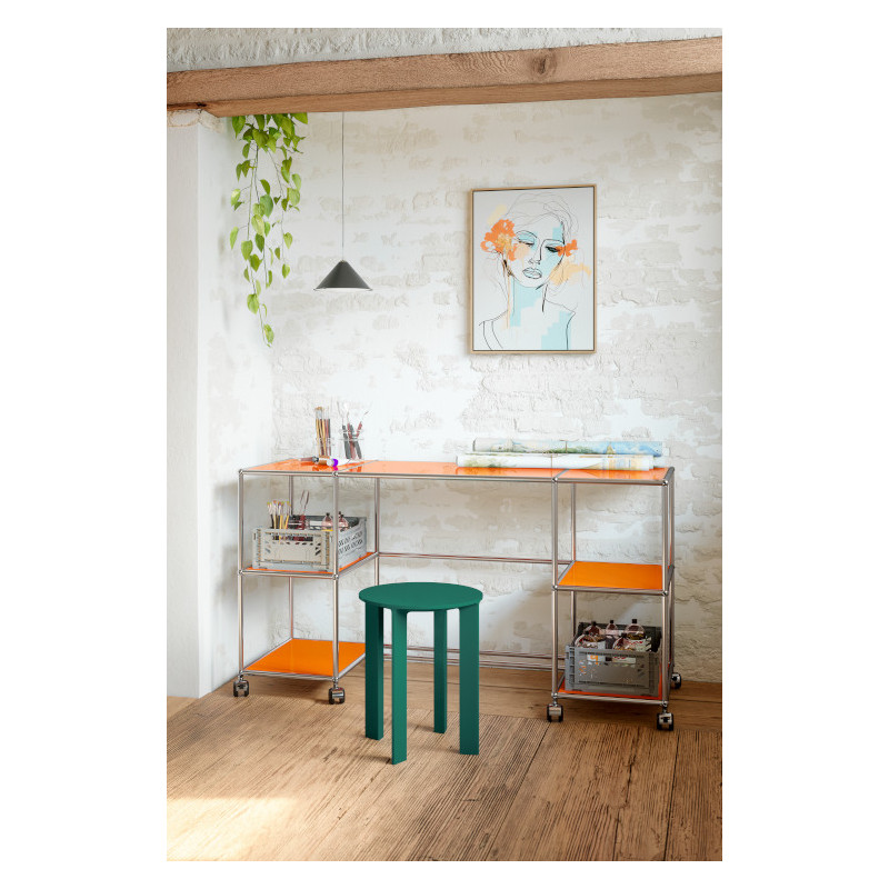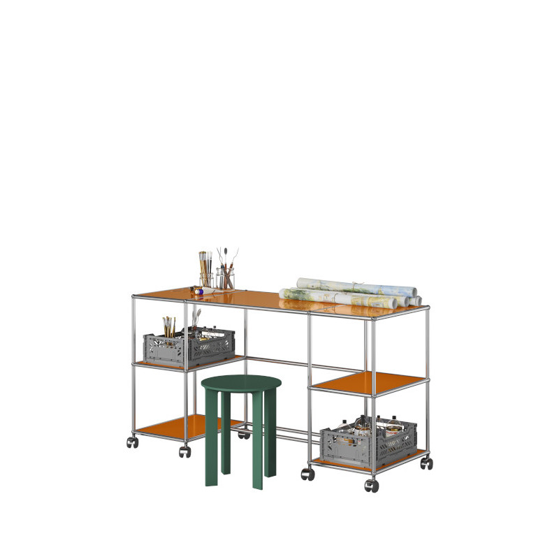 Crafted from chrome-plated steel tubes combined with thermolacquered panels, this piece embodies USM's precision and commitment to enduring design. More than just a desk, it becomes a functional and elegant companion that blends performance, comfort and contemporary design with ease.