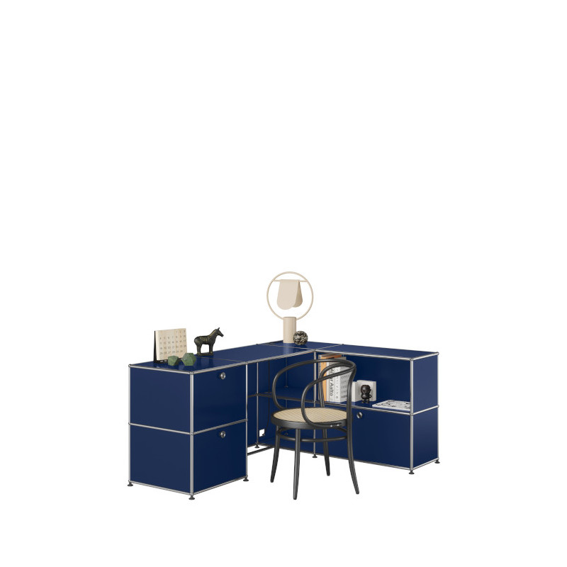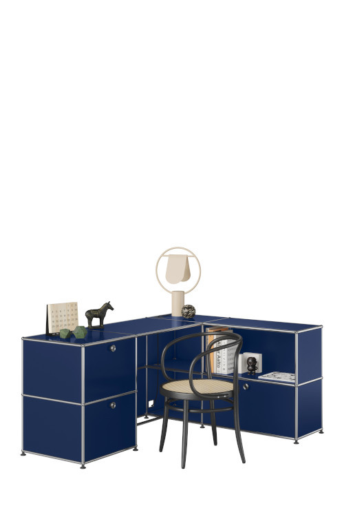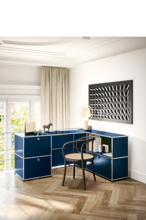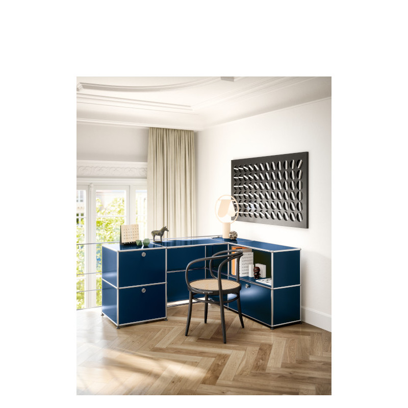 The USM Haller Home Office corner desk combines precision, comfort and refined design to create a workspace dedicated to focus and efficiency. Its corner configuration naturally defines a private zone — a subtle retreat where ideas flow freely and every tool is within reach. Perfect for those who value both productivity and serenity in their working environment.