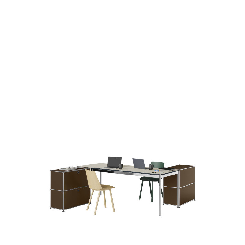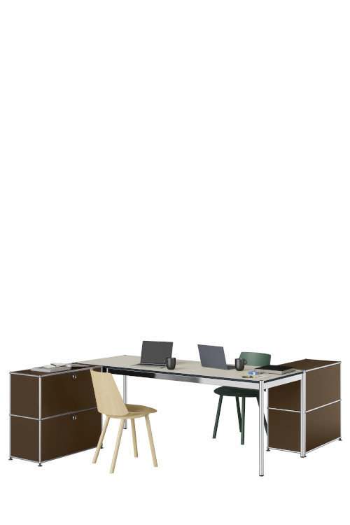 The Home Office USM Haller 2-person desk with storage perfectly balances minimalism, functionality and a collaborative working spirit. This dual workstation offers each user a dedicated area while enabling effortless interaction in a shared professional atmosphere. The refined structural lines create an elegant geometry, ideal for shaping a productive environment.