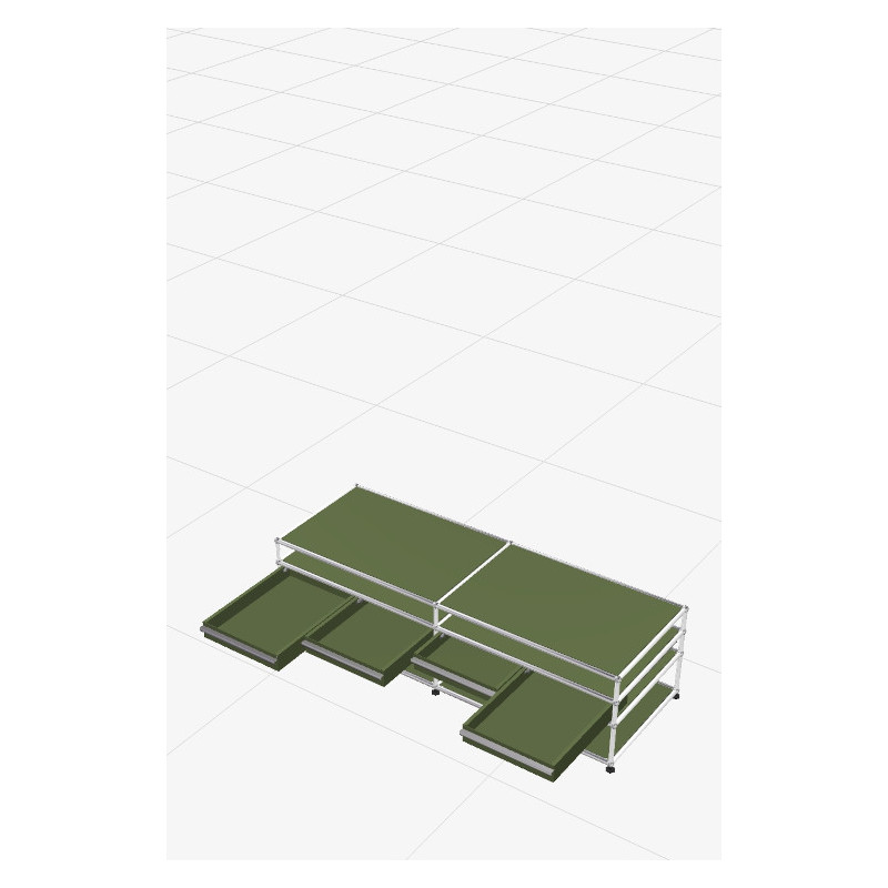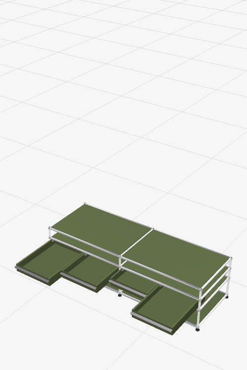 Designed to complement the most refined interiors, this USM Haller low media unit asserts its presence through a tubular structure in chromed steel combined with powder-coated panels crafted with exemplary precision. This foundation supports one of the collection's major strengths: a selection of 14 exclusive colours that allow the piece to be orchestrated according to the desired atmosphere. It can become a discreet element that blends seamlessly into the decor, or, on the contrary, a bold graphic statement at the heart of the living room.