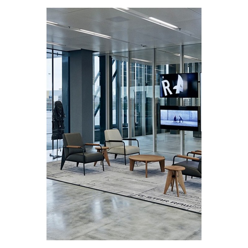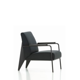 Fauteuil de Salon joins simple planes into a unified architectural object with a comfortable seat surface and backrest. Rediscovered in the archives of the French engineer Jean Prouvé, the armchair has been updated in a contemporary colour palette. With oiled, solid wood armrests and the designer's characteristic structural aesthetic, the Fauteuil de Salon can be ideally combined with other pieces in the Prouvé Collection.