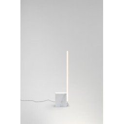Cette esthétique incroyablement minimale est obtenue grâce à une connexion magnétique invisible entre l'élément éclairant linéaire et la base en marbre. Le résultat est une composition synthétique de formes de base.