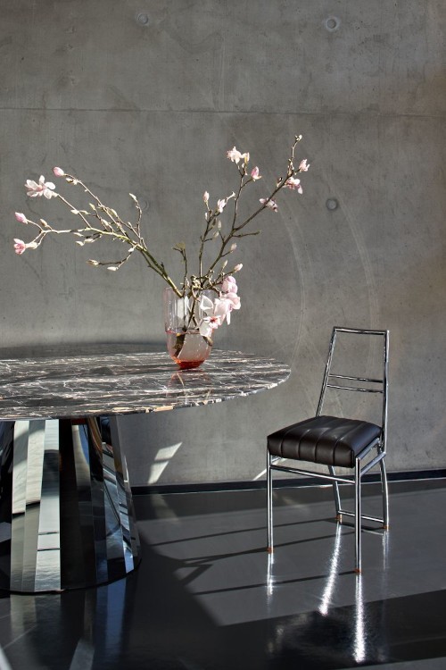 Acier tubulaire chromé, revêtement en tissu ou cuir.
