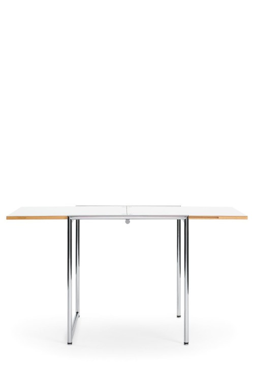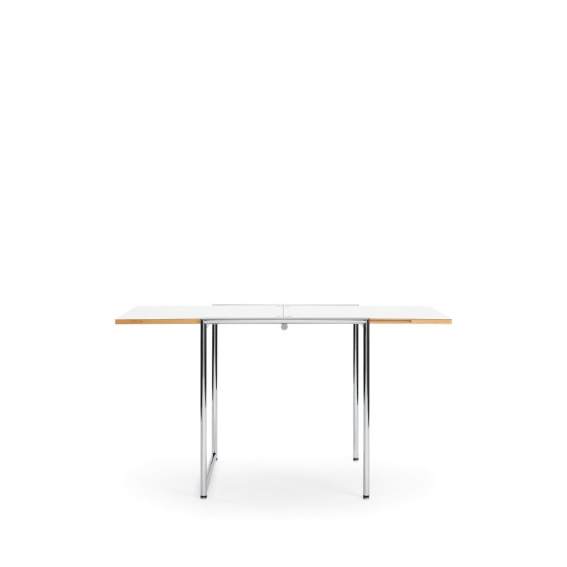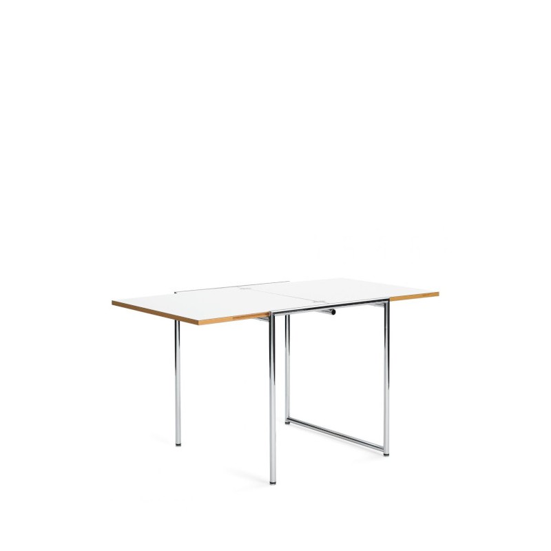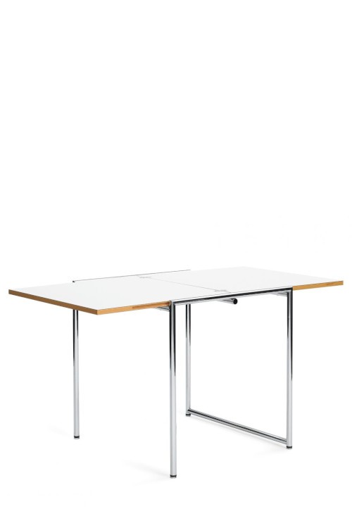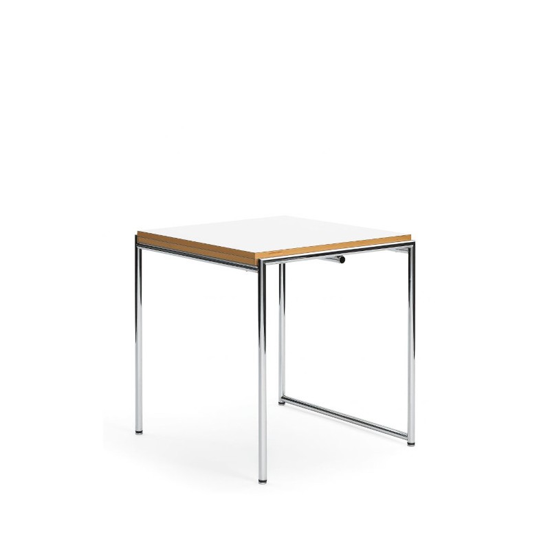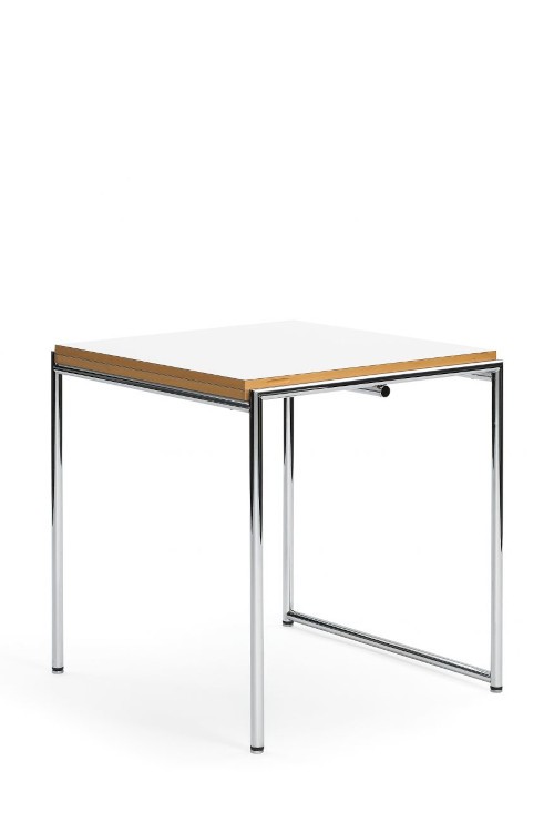 Structure tubulaire en chrome, plateau pliable, laminé avec bords en bouleau. Patins ajustables.
