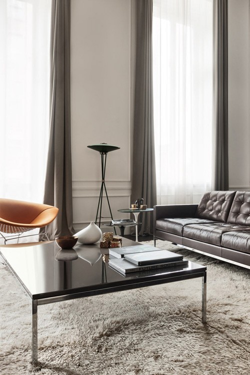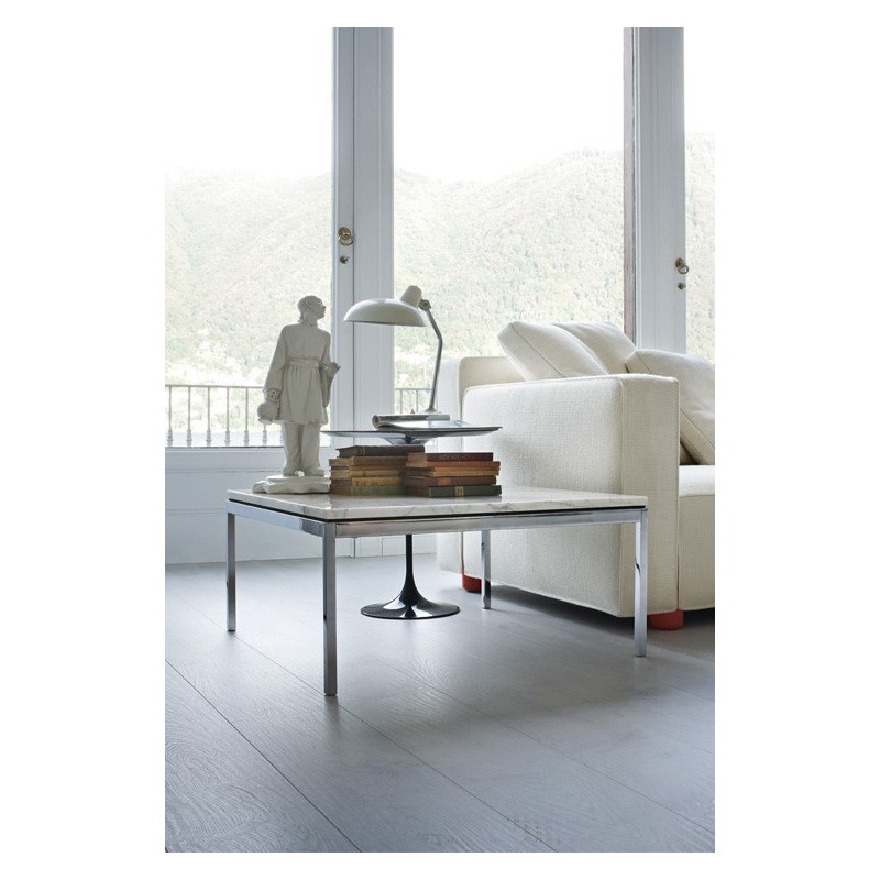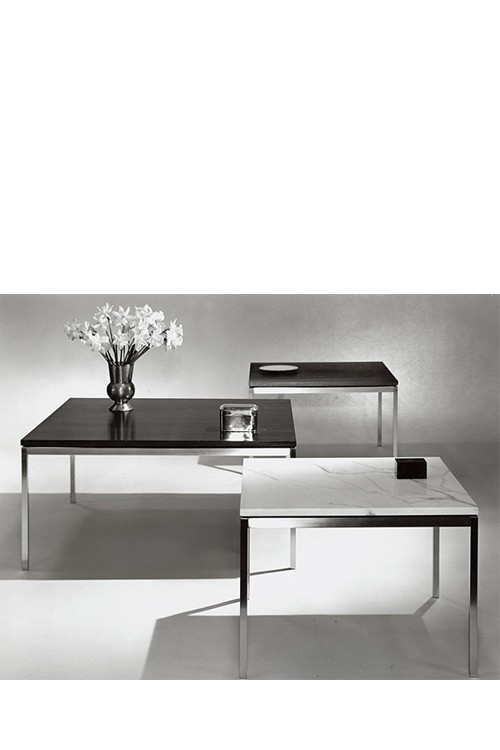 La Coffee Table a été créée par Florence Knoll pour les aménagements privés et publics des États-Unis d'après- guerre. Elle est son interprétation des lignes, gestes et matériaux de l'architecture des années 60. En cohérence avec les designs de Florence Knoll, la table a une silhouette épurée et géométrique, selon l'approche rationnelle du design que Mies van der Rohe lui a apprise.