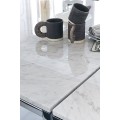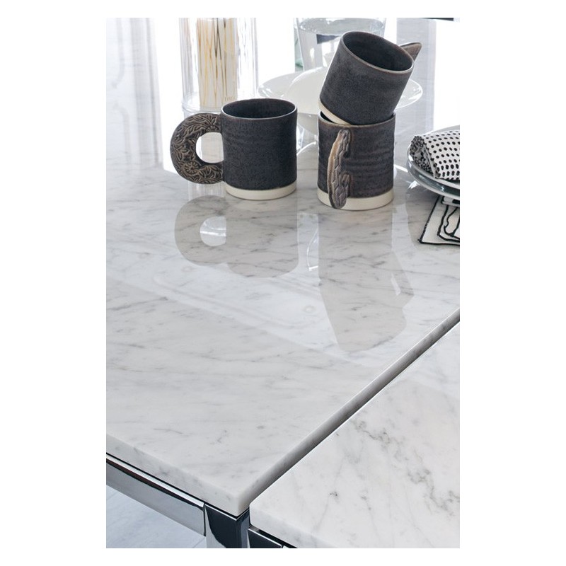 Modèle chiffré: base chrome poli, plateau en marbre Arabescato - n'hésitez pas à nous contacter pour d'autres options.