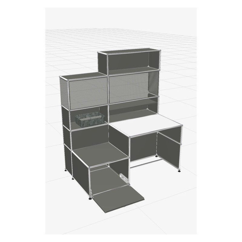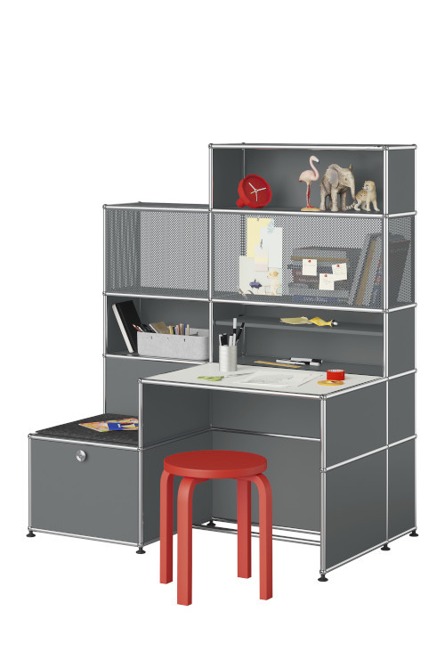Élaboré à partir d'une ossature tubulaire en acier chromé et de panneaux métalliques thermolaqués, ce bureau exprime tout le savoir-faire d'USM Haller en matière de mobilier design haut de gamme. Incontestable élément durable et évolutif, il pourra accompagner l'enfant tout au long de sa croissance.