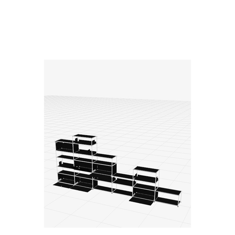 Cette bibliothèque USM Haller s'impose par sa largeur généreuse qui étire le regard et apporte une sensation d'ouverture immédiate. Son format bas et étendu s'intègre naturellement le long d'un mur, sous une oeuvre ou face à un canapé, tout en conservant une allure maîtrisée et raffinée.