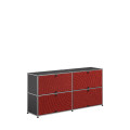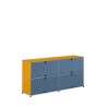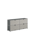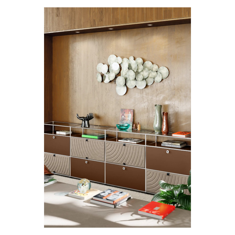 Sa structure repose sur l’iconique ossature en tubes d’acier chromé, associée à des panneaux métalliques thermolaqués aux finitions soignées, signature du savoir-faire suisse. Avec ses quatre modules, il offre un volume de rangement conséquent tout en conservant une silhouette parfaitement maîtrisée, où chaque ligne s’inscrit avec justesse dans une composition équilibrée et résolument contemporaine.