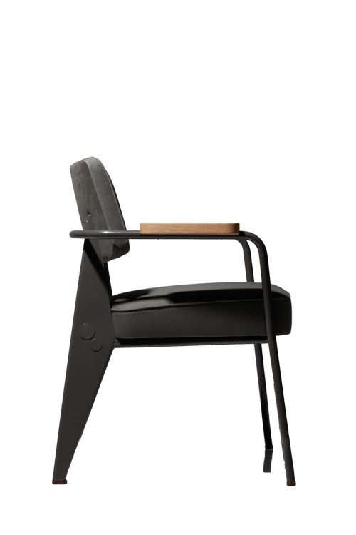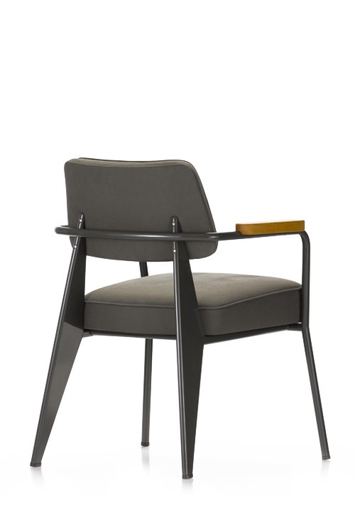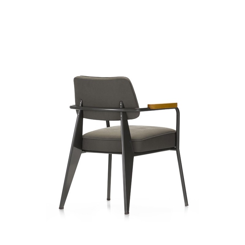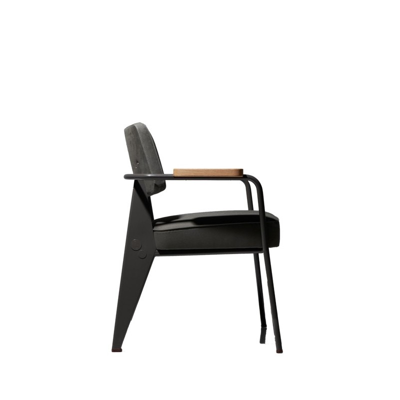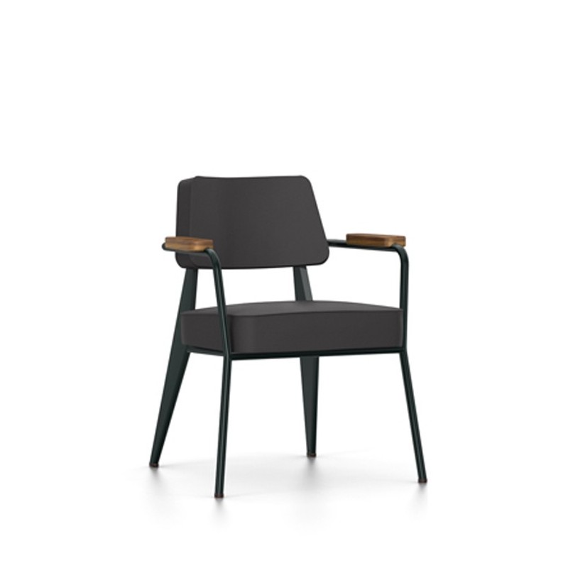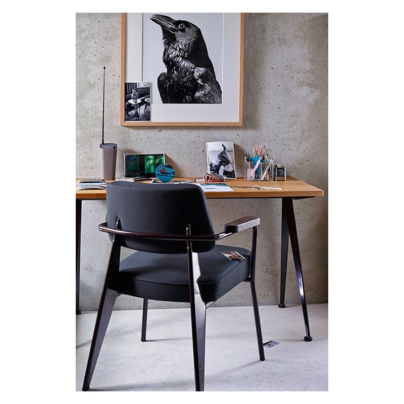 Dessiné par Jean Prouvé en 1951, le Fauteuil Direction Vitra est un siège confortable et élégant avec un châssis à quatre pieds et un revêtement en tissu disponible en plusieurs coloris. Doté d'accoudoirs en bois, ce petit fauteuil conviendra aussi bien aux espaces de vie que de travail et s'accordera parfaitement au bureau Compas Direction Vitra.